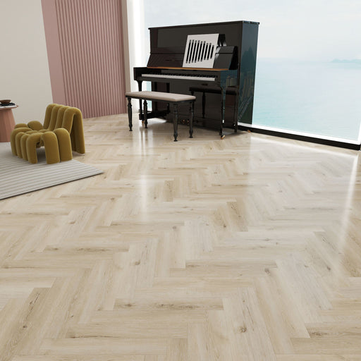 LAME PVC CLIPSABLE CHEVRON CHENE CLAIR (5,5MM D'EPAISSEUR) SOUS-COUCHE INTEGREE, GARANTIE 30 ANS